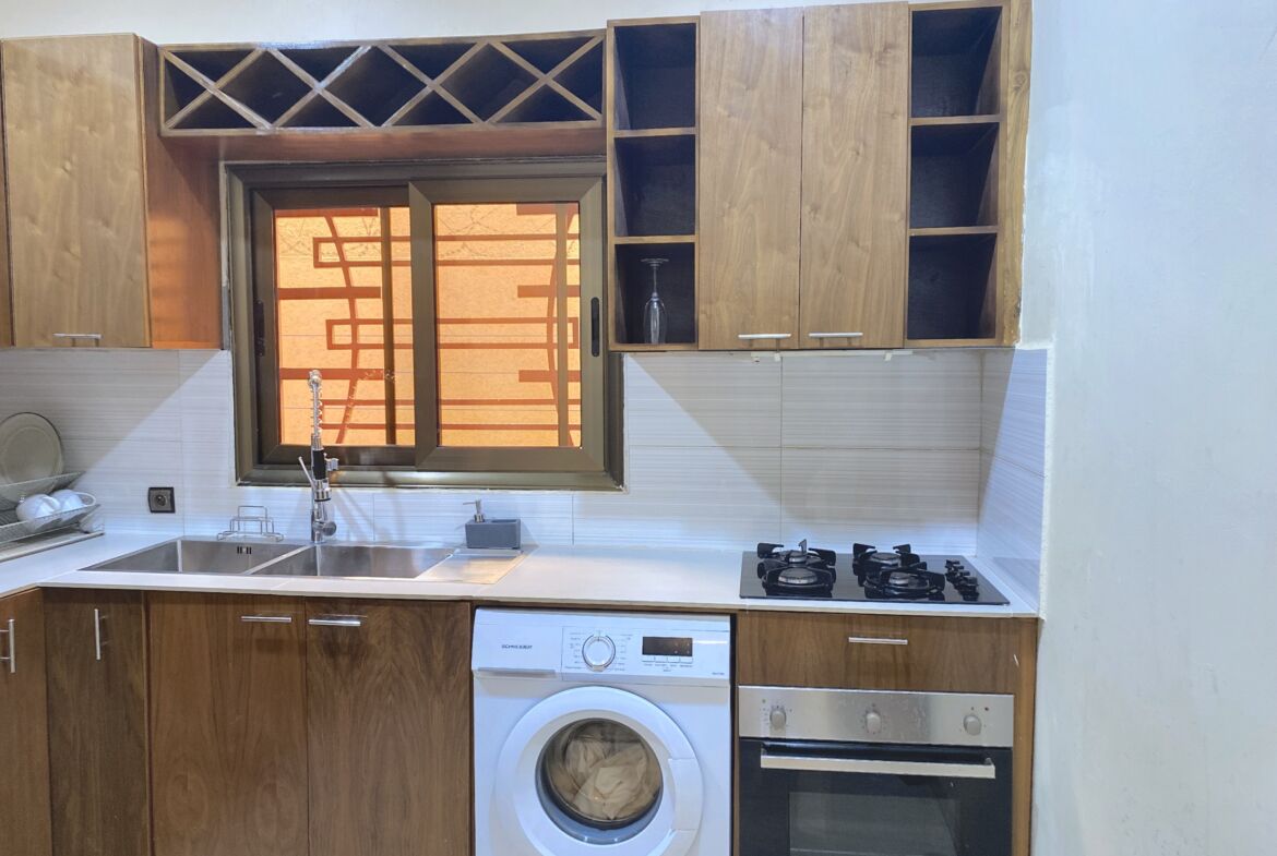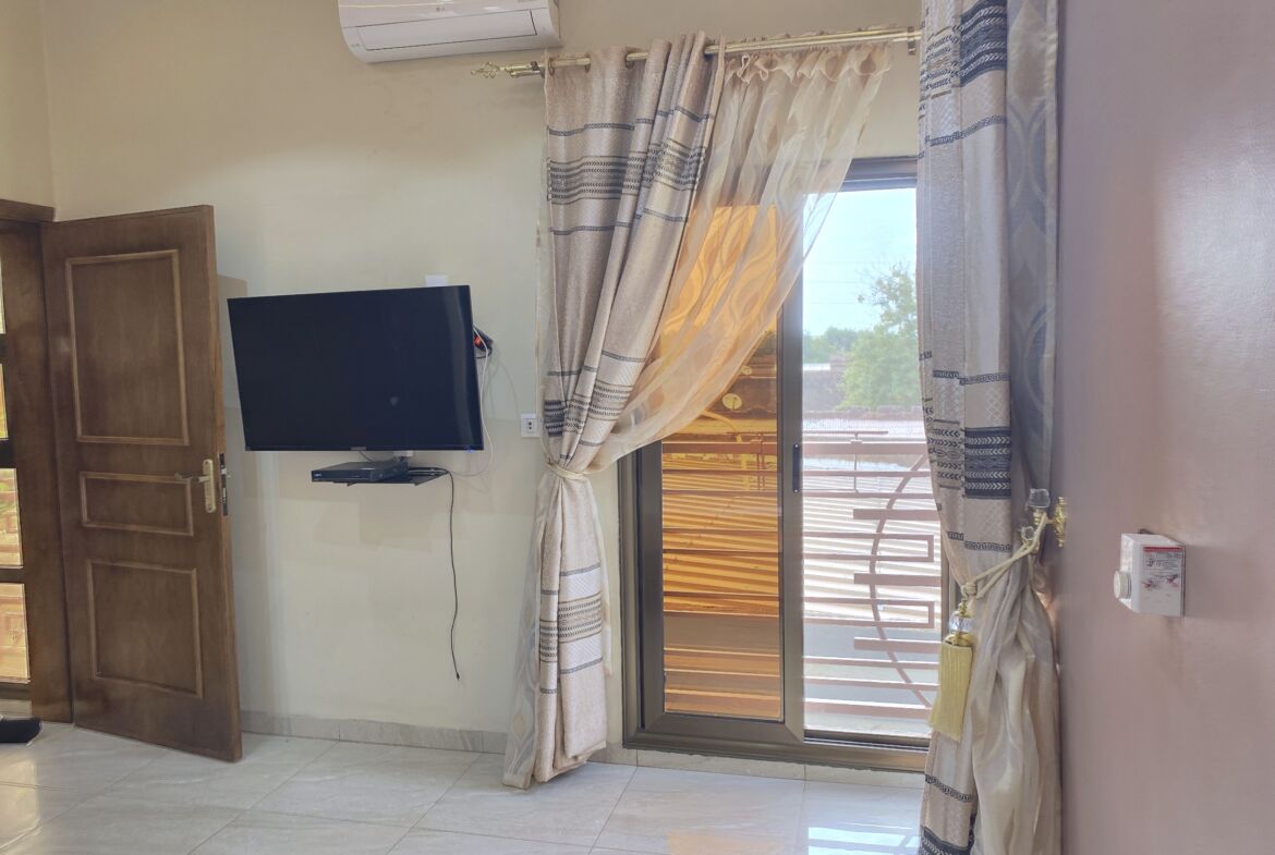 01 appartement de type F2 ; un salon équipé – une chambre autonome équipée – une cuisine américaine-une petite terrasse.