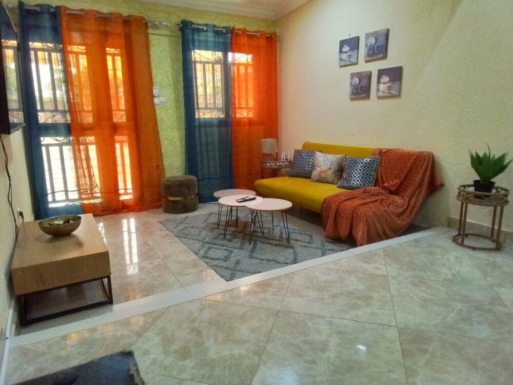 Imaginez-vous vivre dans cette villa élégamment décorée avec des meubles de qualité qui créent une atmosphère chaleureuse et accueillante. Elle se compose d’une chambre autonome bien aménagée avec un lit confortable, des rangements intégrés et une salle d’eau moderne. Le salon lumineux est équipé de fauteuils de standing, d’une table basse, d’un téléviseur et d’un climatiseur pour votre confort optimal. La cuisine fonctionnelle est entièrement équipée avec réfrigérateur, cuisinière, micro-ondes et ustensiles de cuisine. Un garage ouvert peut accueillir votre véhicule.