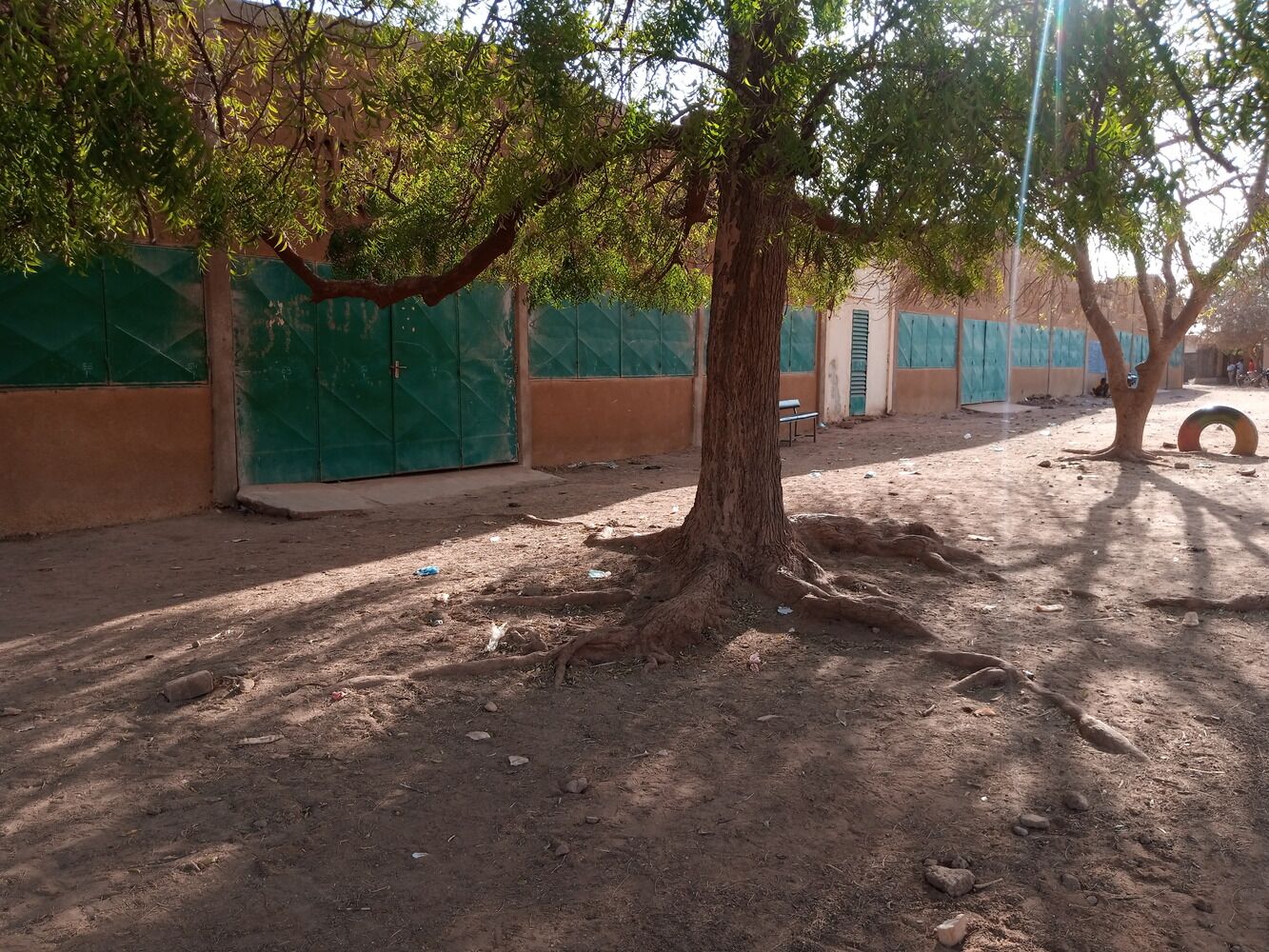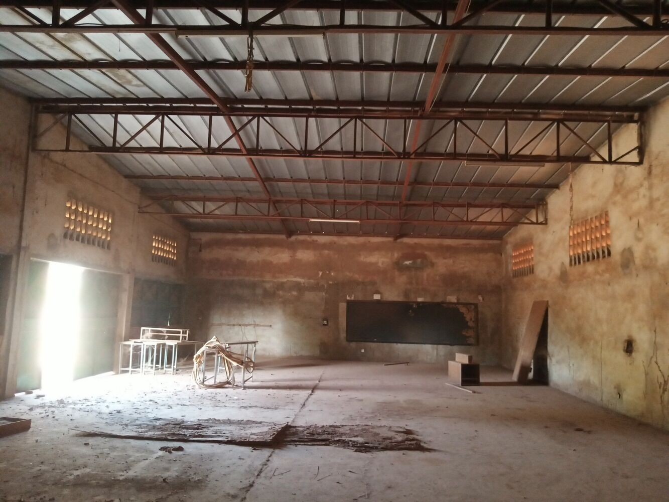 Dans la cour se trouve un local pour gardien, et un grand espace pour la manutention.