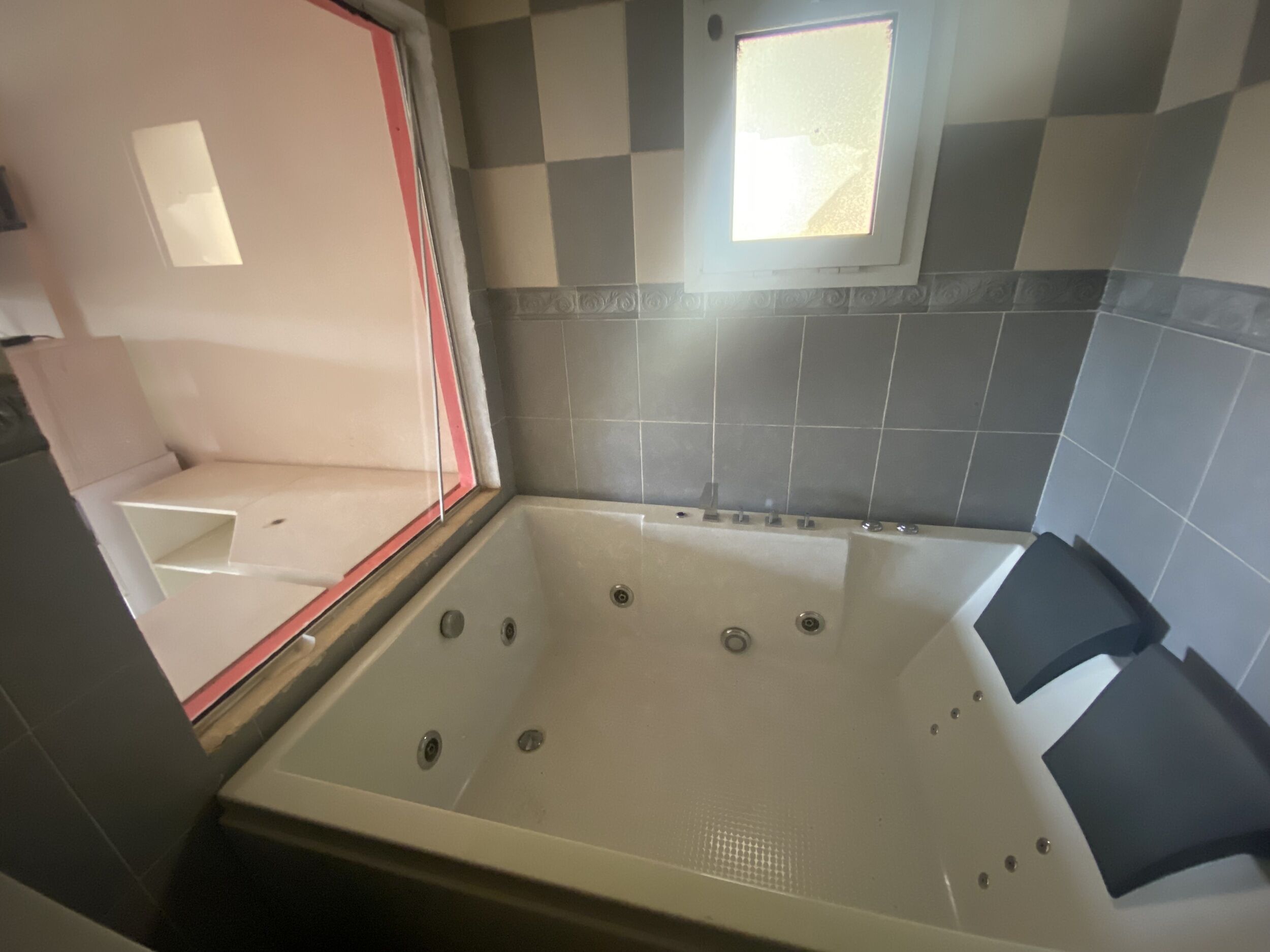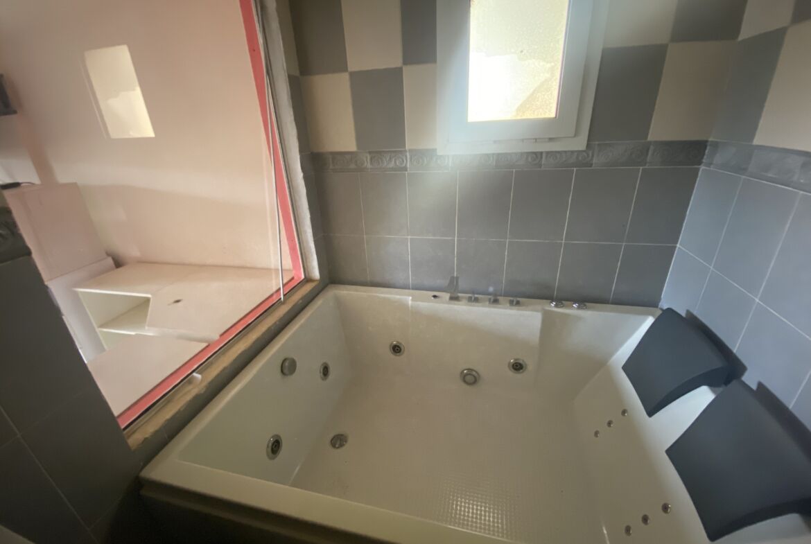 1 chambre spacieuse avec salle de bains équipée d’une baignoire ultra-moderne