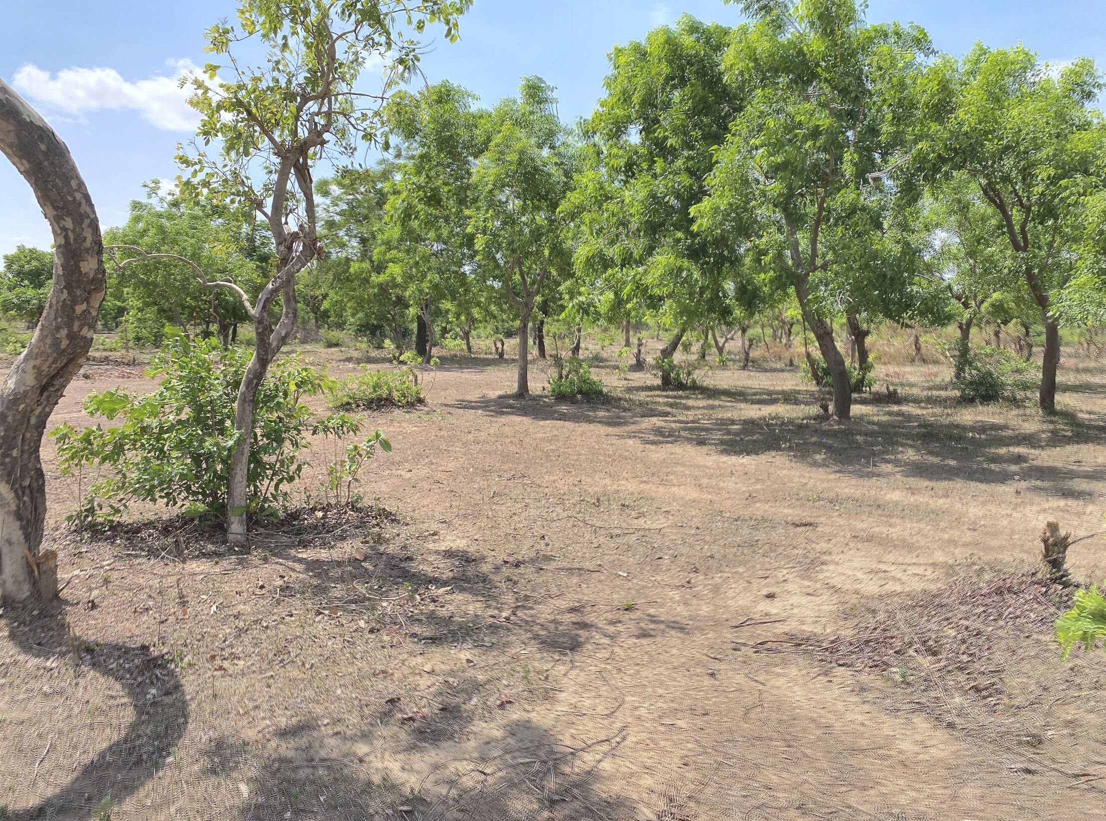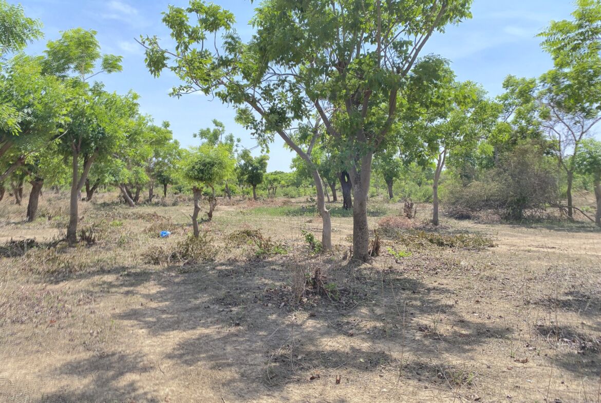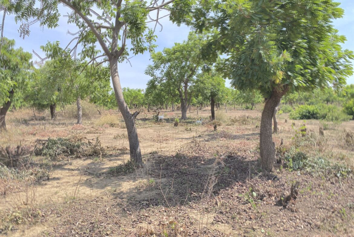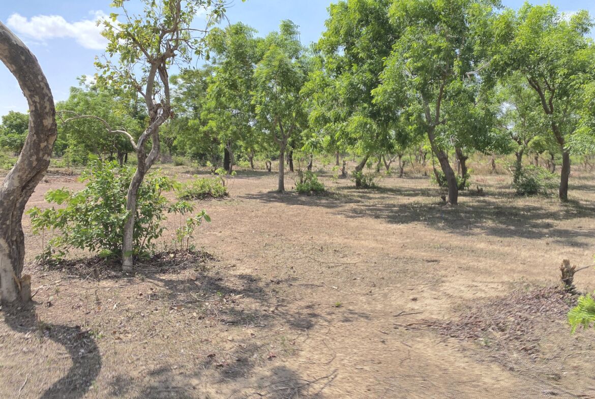 Plat, fertile et planté d’espèces variées : raisin, karité, etc.