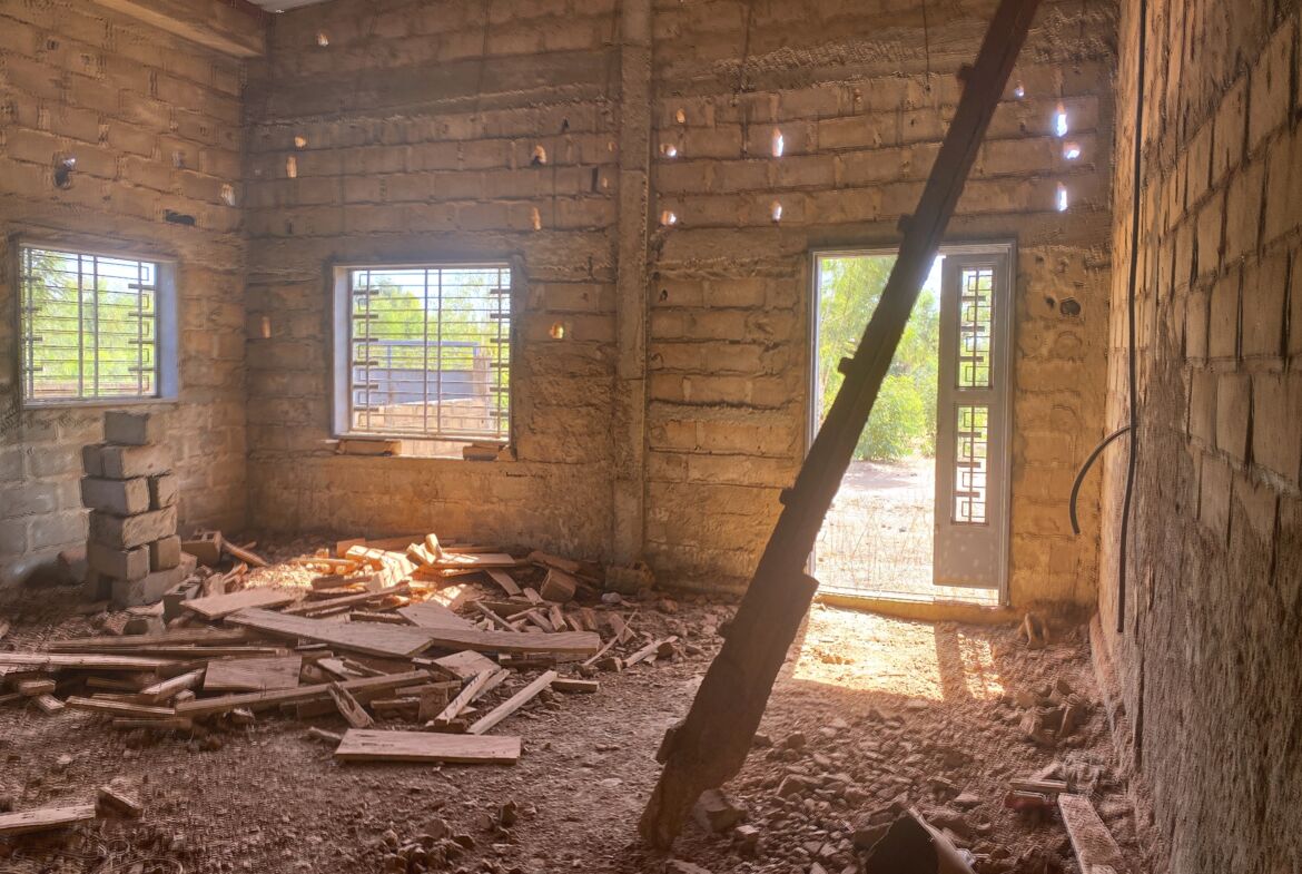 Chaque mini-villa de type F3 vous offre un espace de vie bien pensé : deux chambres, un salon, une cuisine et une douche avec WC au couloir. Les constructions sont actuellement en phase de finition avec un taux d’avancement supérieur à 80 %, vous permettant de finaliser rapidement les travaux selon vos préférences et votre budget.