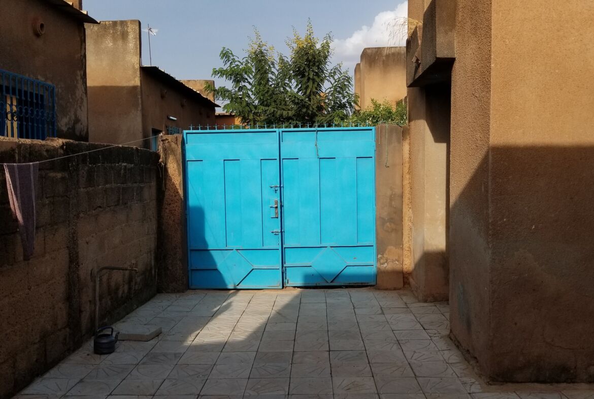 La maison comporte un salon – salle à manger, une cuisine, 2 chambres, un WC et une salle de douche séparés et dispose d’une grande cour pavée. Elle est située à 280 mètres de la chaussée, non loin du marché de Bonam.