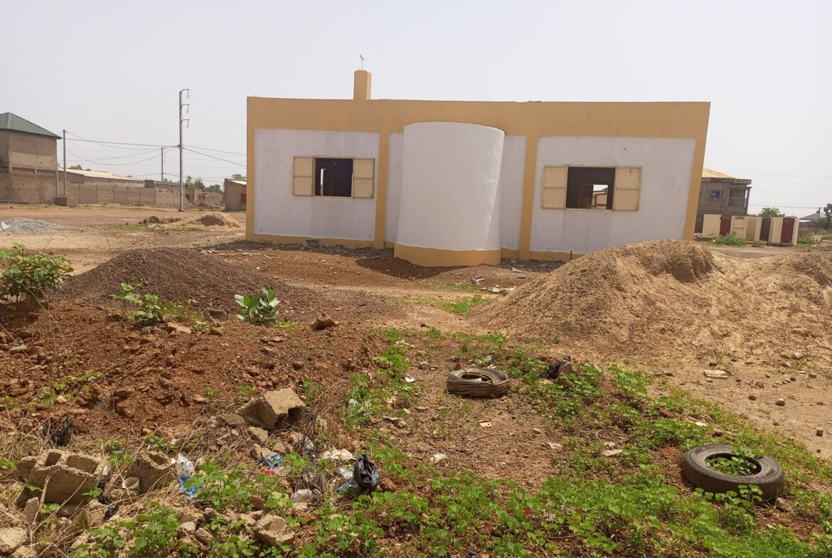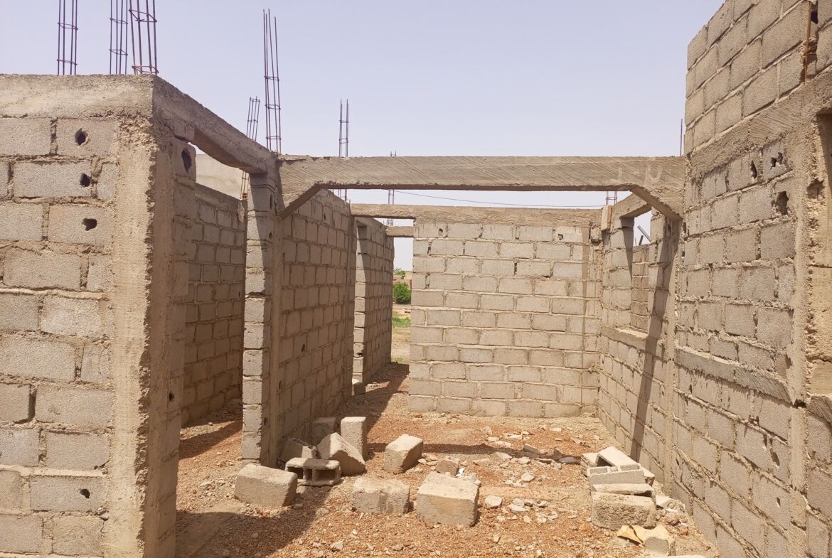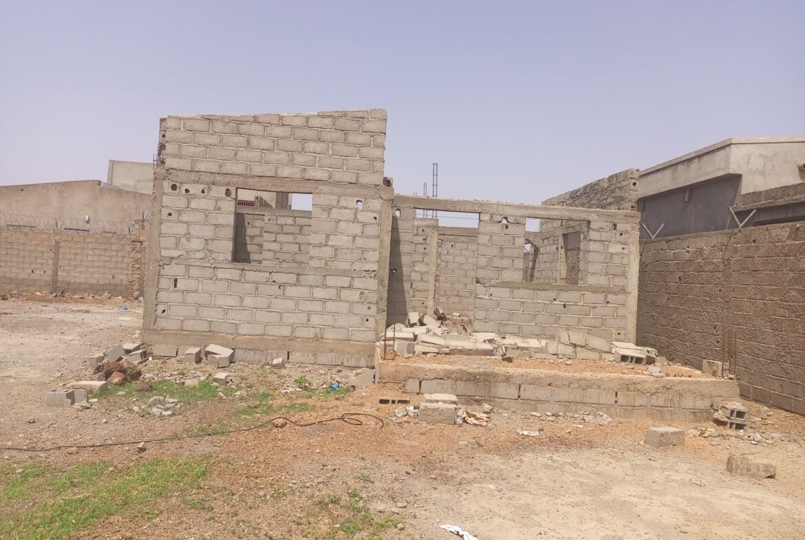Elle abrite une villa inachevée de type F4 : 01 salon – 01 salle à manger – 03 chambres – 02 salles d’eau – 01 cuisine qu’on peut achever ou facilement détruire pour bâtir une maison familiale ou des mini villas pour un projet à but locatif.