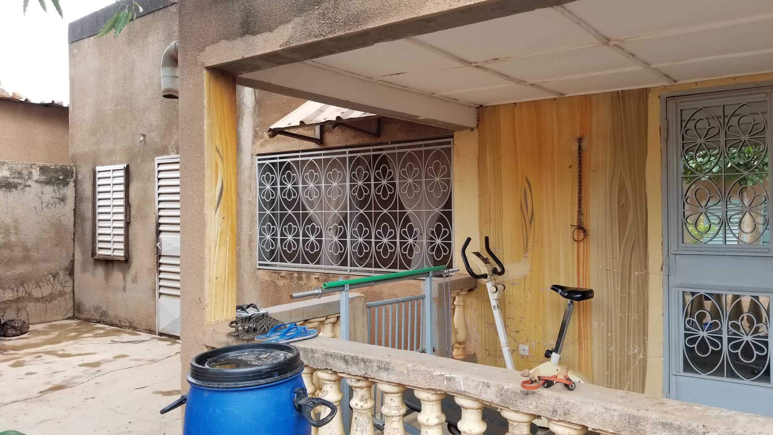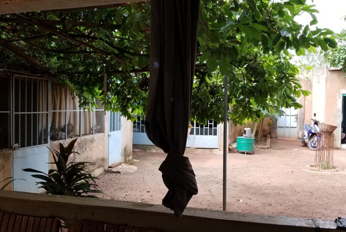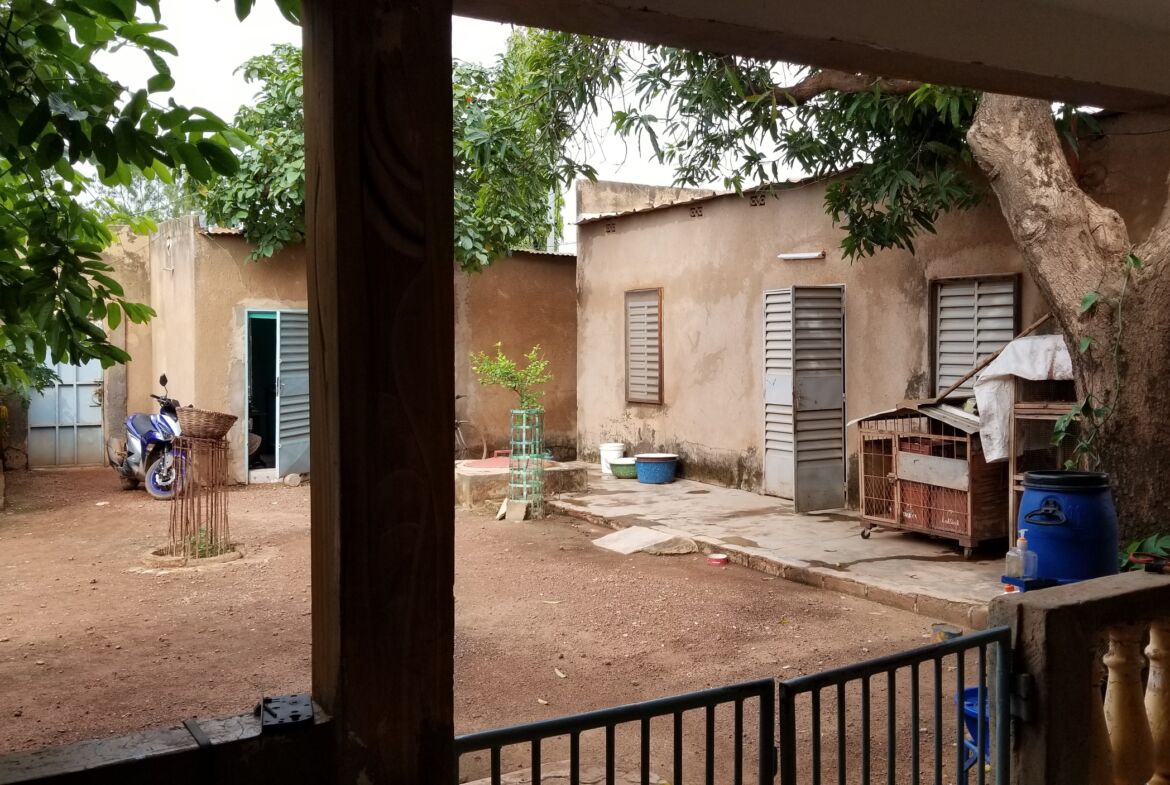 Dans la cour, il y a un autre bâtiment de type F3, un magasin, une boutique à la devanture, un garage, des toilettes externes, un puit et un poulailler.