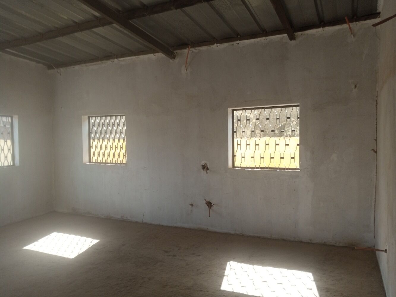 Les travaux restant pour la finition de la villa sont entre autres ; le carrelage, le câblage électrique, la peinture intérieure, la plomberie, et les pavées dans la cour.