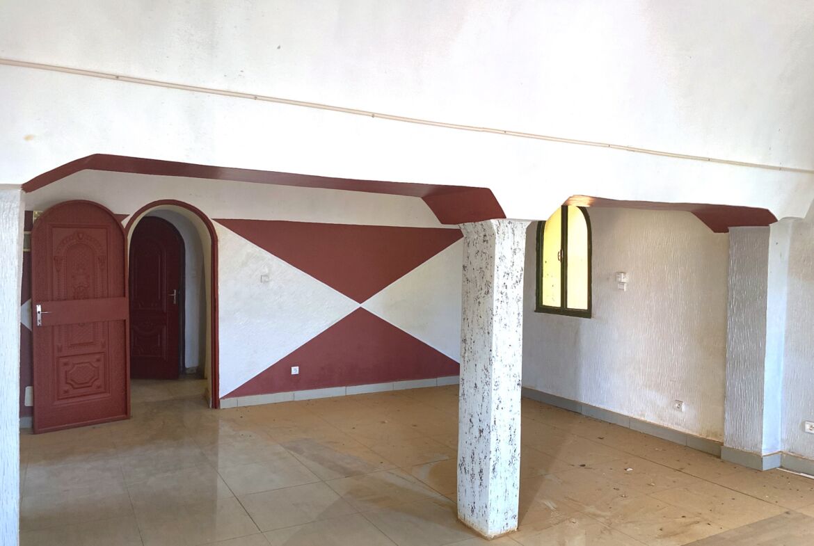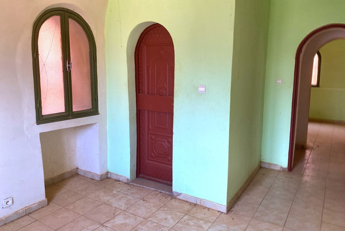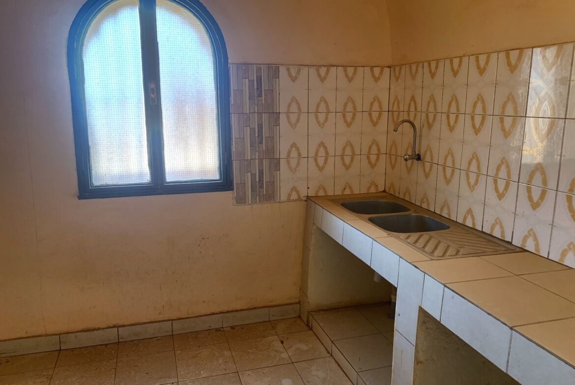 Une maison principale de type F3, construite selon un ancien modèle architectural, avec une cuisine et un grand salon. Elle bénéficie d’un excellent emplacement, en face d’une grande voie rouge.